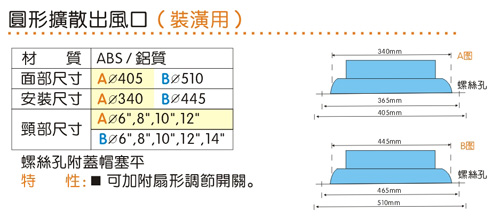 商品名稱: ABS風口-圓形固定擴散式出風口(裝潢用)